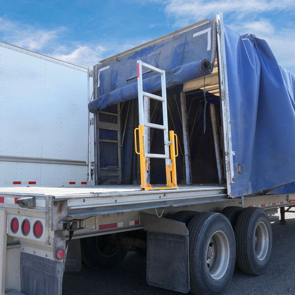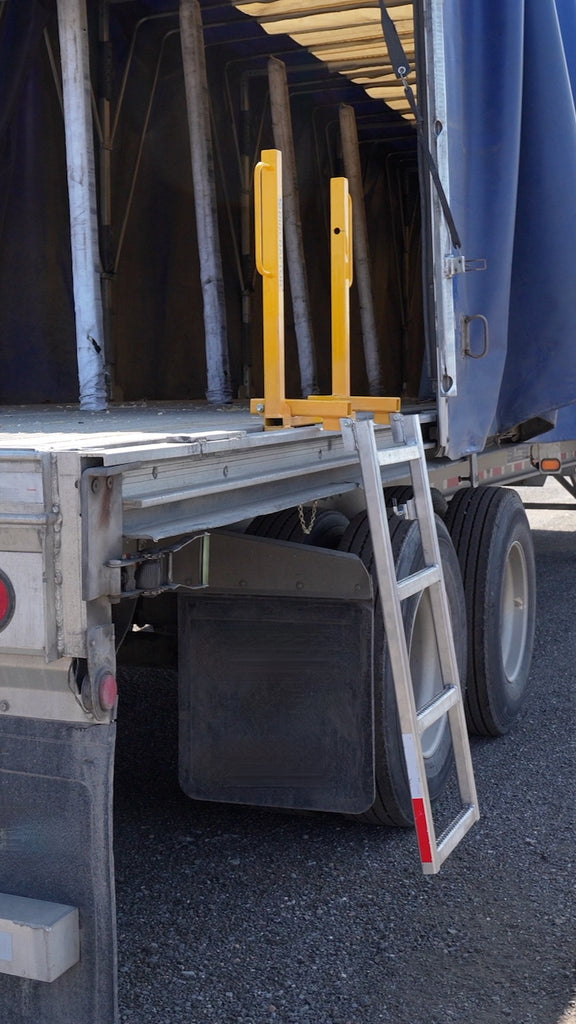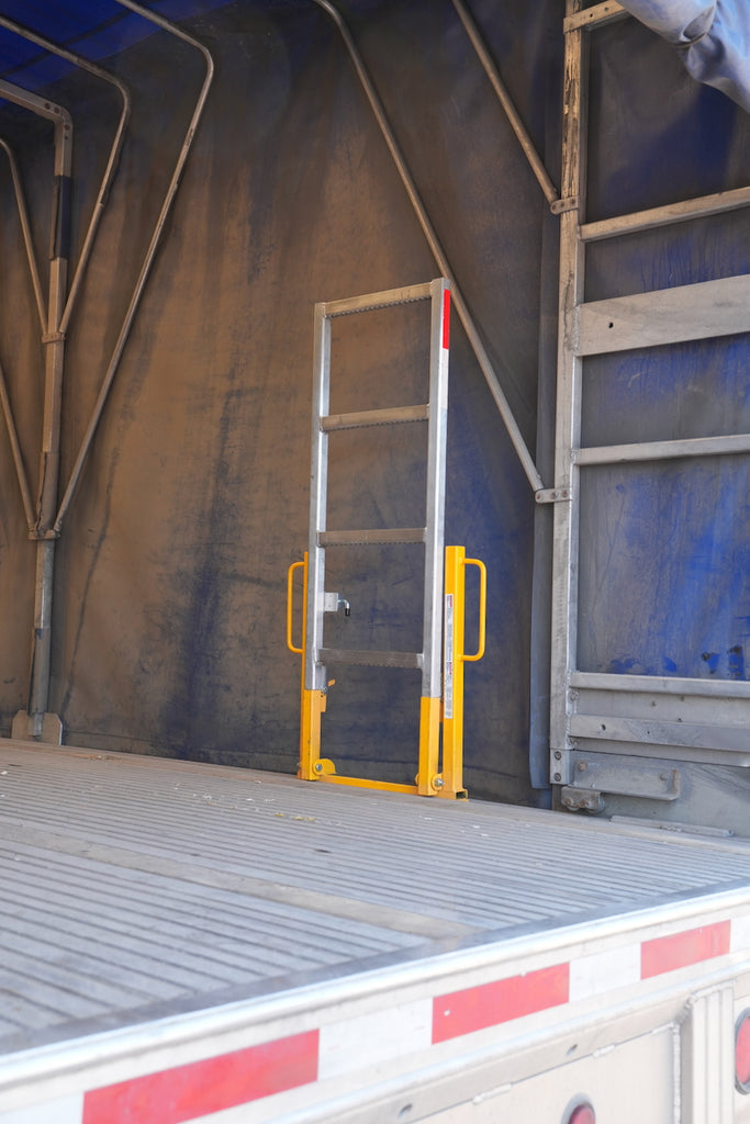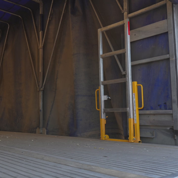 Designed specifically for curtain-side trailers, this folding aluminum and stainless steel ladder delivers exceptional safety and efficiency on the job. It slides easily into your trailer’s side pockets and never interferes with loading or unloading.